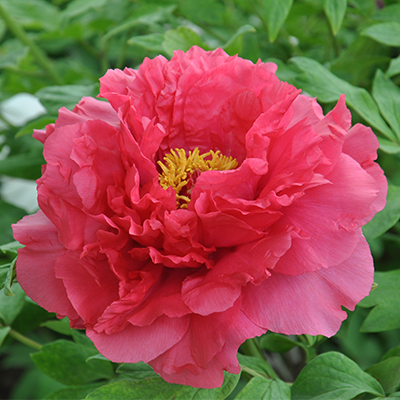 Пион древовидный — Цветки огромные, диаметром 18 см и более, полумахровые, красные с ароматом. На черешках нет пурпурных линий. Кусты мощные, высотой 120-150 см. Цветение в мае-июне.
