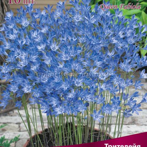 ритейлея рыхлая Квин Фабьола - луковичное растение, обладает красивыми трубчатыми цветками, собранными в рыхлое соцветие-метелку. У этой трителейи цветы могут быть белыми или сиреневыми.