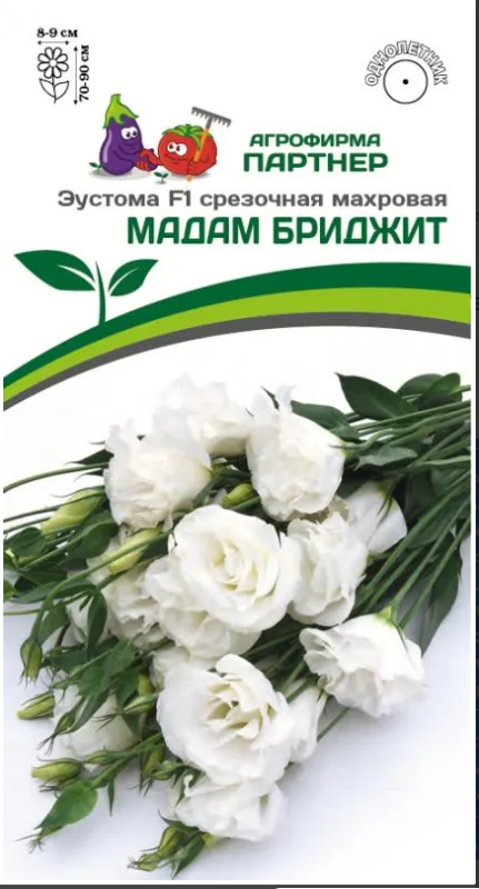 Чарующие и торжественные, порой трепетные и трогательные - эустомы создают особое настроение, украшая наши цветники. МАДАМ БРИДЖИТ - пленительная романтичная красавица с необыкновенной чистотой цвета добавит легкого морозца даже в самый жаркий летний день. Роскошные махровые цветки, достигающие в диаметре 9 см, начинают раскрываться один за другим в начале лета и радуют до сентября. Одно растение с несколькими распустившимися цветками и множеством нераскрытых бутонов выглядит как готовый букет. Плотные атласные лепестки цветков хорошо держат форму и долго сохраняют свежесть в срезке. Такие качества высоко ценятся как в цветоводстве, так и во флористике. Серия надежная, выносливая и устойчивая к капризам погоды и болезням, в том числе и к серой гнили (Botrytis). Чтобы уже в начале лета наслаждаться цветением, стоит своевременно позаботиться о выращивании рассады. Рекомендуемый объем кашпо - 5-8 л на одно растение или схема посадки в грунт – 25х25 см.