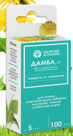 Гербицид Дамба - системный послевсходовый гербицид для борьбы с однолетними и некоторыми многолетними двудольными сорняками в посевах зерновых культур и кукурузы. Проявляет высокую биологическую эффективность против широкого спектра двудольных сорняков, включая наиболее проблемные - бодяк, вьюнок и др. Высокая биологическая эффективность против широкого спектра двудольных сорняков, включая наиболее опасные из них.